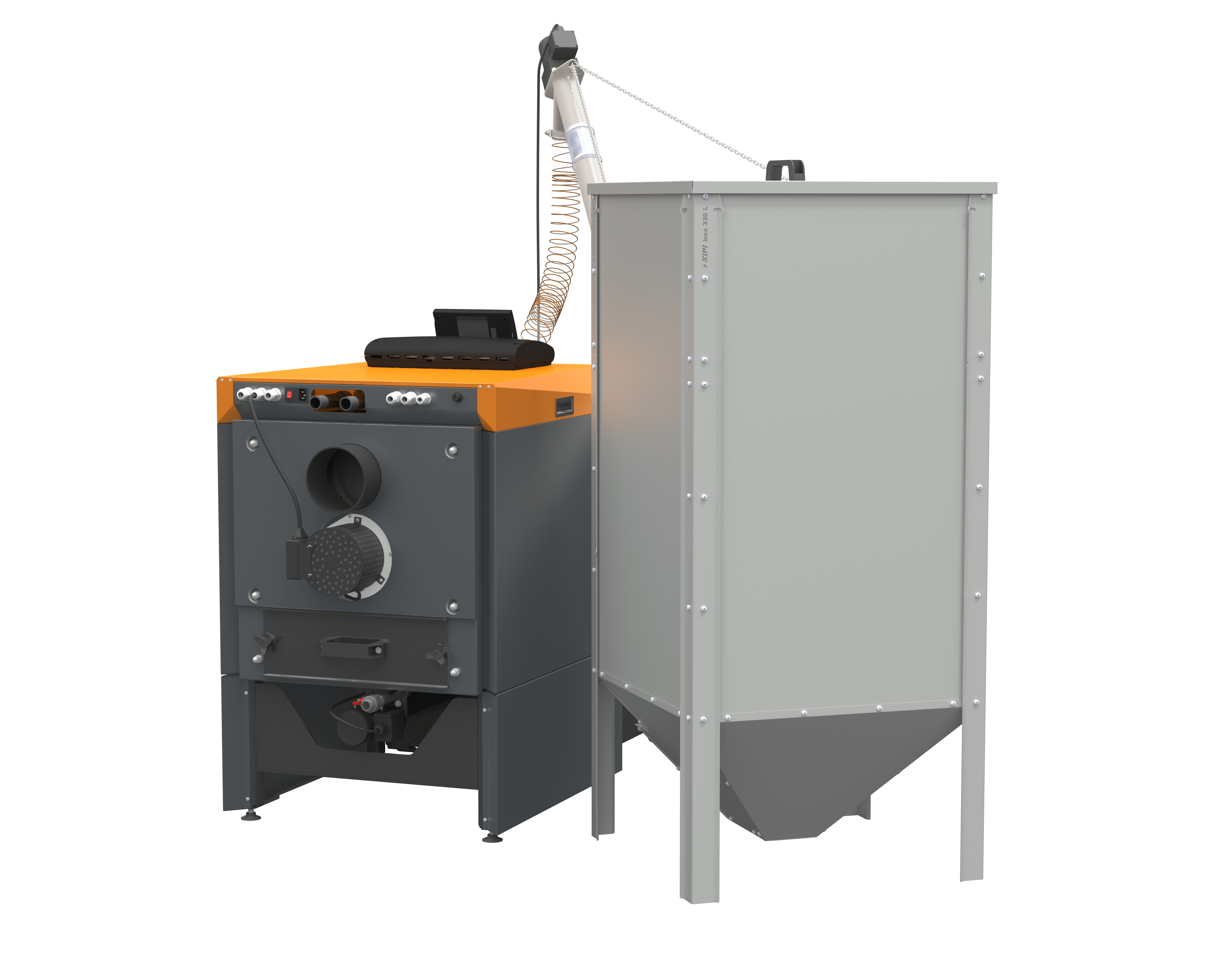 Oferta dotyczy kotła bez zasobnika na popiół z systemem automatycznego odpopielania, bez zasobnika bocznego na pellet.